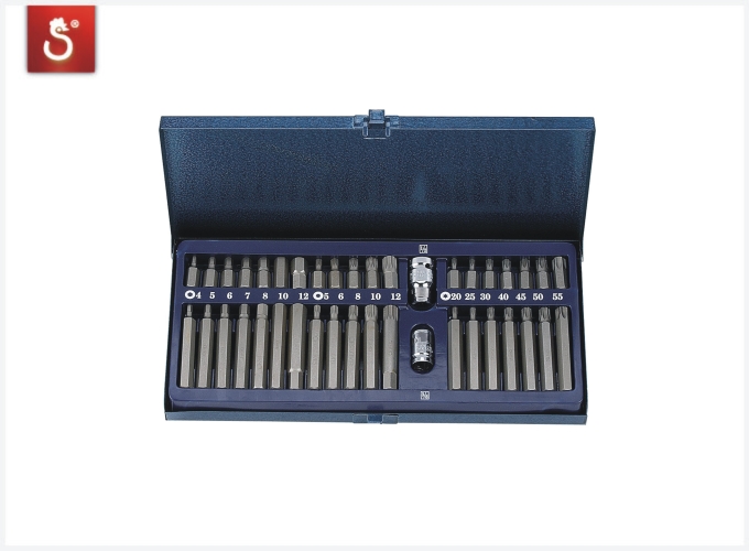 CONTENTS:2 BIT ADAPTER 1/2",3/8"7 30mm HEX 4,5,6,7,8,10,12mm7 75mm HEX 4,5,6,7,8,10,12mm7 30mm STAR T20,T25,T30,T40,T45,T50,T557 75mm STAR T20,T25,T30,T40,T45,T50,T555 30mm SPLINE BITS 5,6,8,10,12mm5 75mm SPLINE BITS 5,6,8,10,12mmMETAL CASE